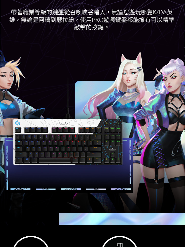 Logitech K/DA PRO RGB 機械式鍵盤(GX觸感茶軸)