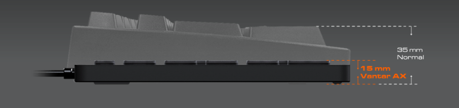 有別於一般鍵盤,剪刀腳設計加上薄型鍵帽為玩家們帶來了新的選擇,獨特的手感將使VANTAR AX成為最佳的鍵盤夥伴。