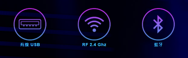 - 三模連線功能:無線 2.4GHz RF、藍牙低功耗、有線 USB