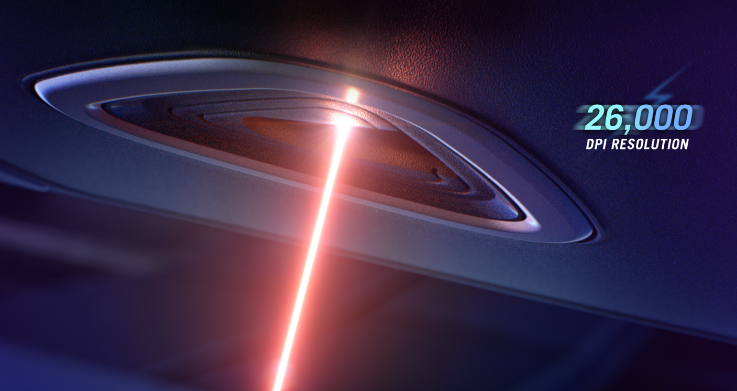 - 搭載 19,000 dpi (1% 偏差並特別調校至 26,000 dpi)、400 ips 光學感測器以及 1000 Hz 輪詢率