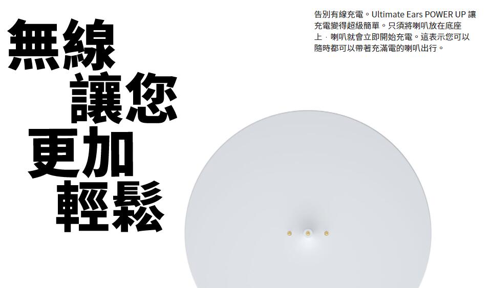 利用 POWER UP 充電底座,享受對 BOOM 3 和 MEGABOOM 3 喇叭進行便攜充電