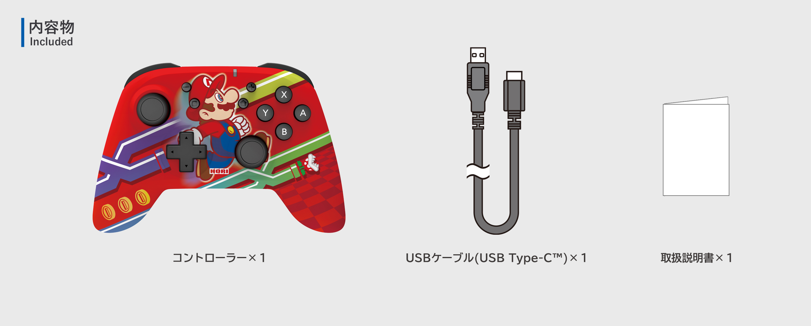 充滿躍動感的超級馬里奧設計的無線控制器登場!搭載加速度感測器/陀螺儀感測器的無線控制器。