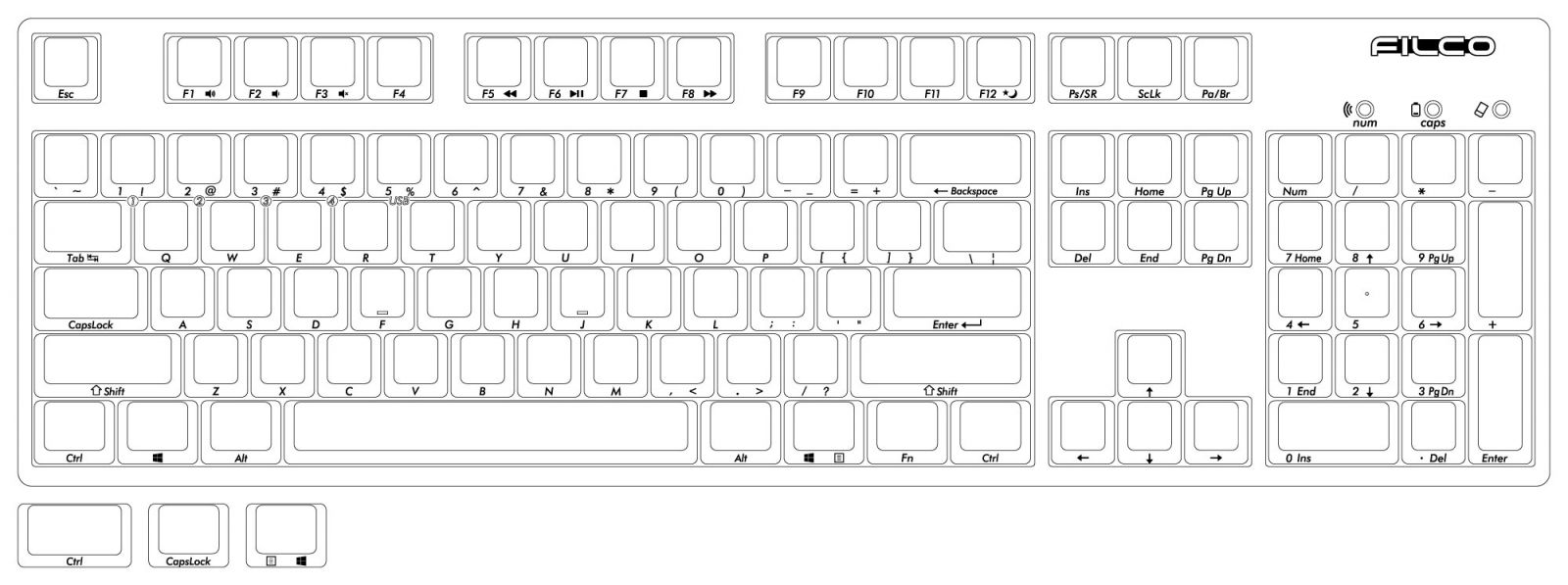 AA鹼性電池 x2、Filco拔鍵器、替換用鍵帽 x3、USB線。