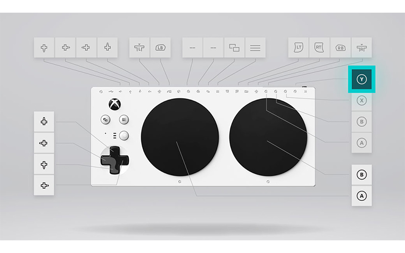 Xbox Adaptive Controller專為滿足行動不便玩家的需求所設計,搭載可設定程式的大按鈕,並可外接交換器、按鈕、托架及搖桿,創造更無障礙的遊戲環境。讓傷健共融,一同享受遊戲樂趣。