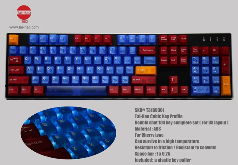 - 104 Keys + 1xESC red + 1x1.75u Shift red+ 2x Enter red