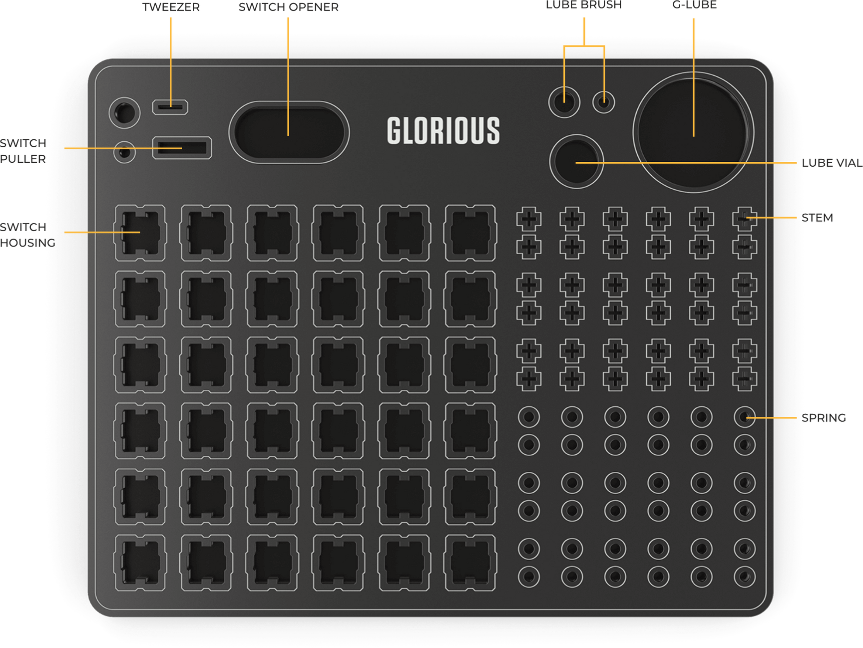 於機械鍵盤軸體的優質潤滑站,讓你好好管理您的軸體改裝。 這款必備工具專為實現最高效率而設計,讓你免於陷入打理軸體時難以避免的混亂場景。
