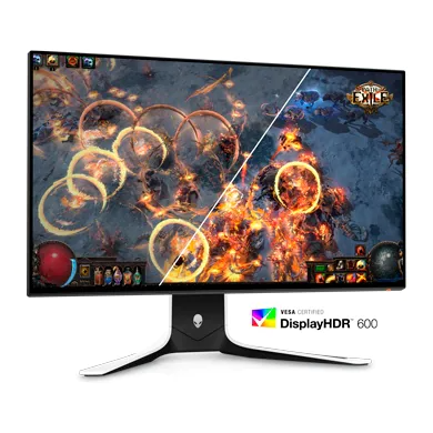更上一層樓:VESA DisplayHDR™ 600 可提供即時對比率和局部調光功能,能產生令人驚豔的高亮度與深黑色,同時也支援更寬廣的色域。此外,相較於 Full HD 解析度,QHD 解析度最多能讓您在螢幕上多看到 77% 的遊戲內容,並提供驚人的細節。