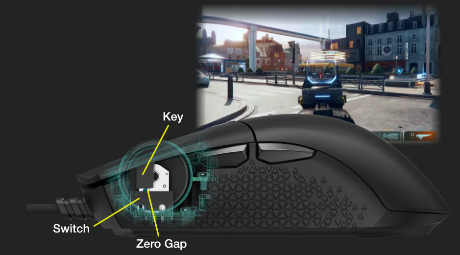 CORSAIR QUICKSTRIKE按鈕採用彈簧預緊設計,左右按鈕之間及其切換實現零間隙,讓您的按鍵、射擊和輸入操作都比以往更快。