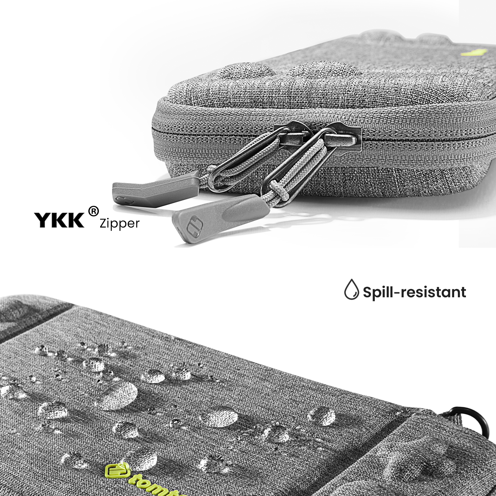 該保護殼採用優質配件YKK拉鍊和拉頭,以進一步保護您的設備,並確保每次打開或關閉時都能保持平順可靠。外部材料具有防潑水功能又兼顧舒適的手感,而內部則採用特製的絨布製成,可防止設備和螢幕刮傷。