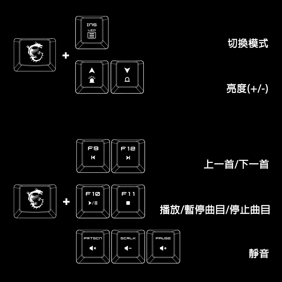 使用熱鍵控制GK20,無需安裝軟體即可輕鬆調整按鍵背光亮度、媒體播放和音量。