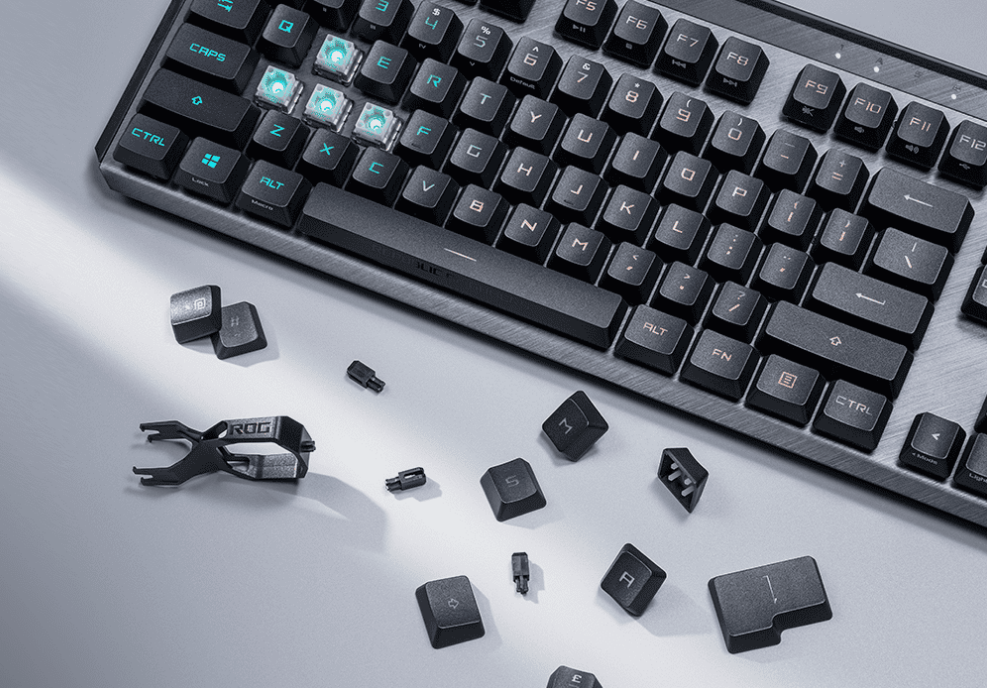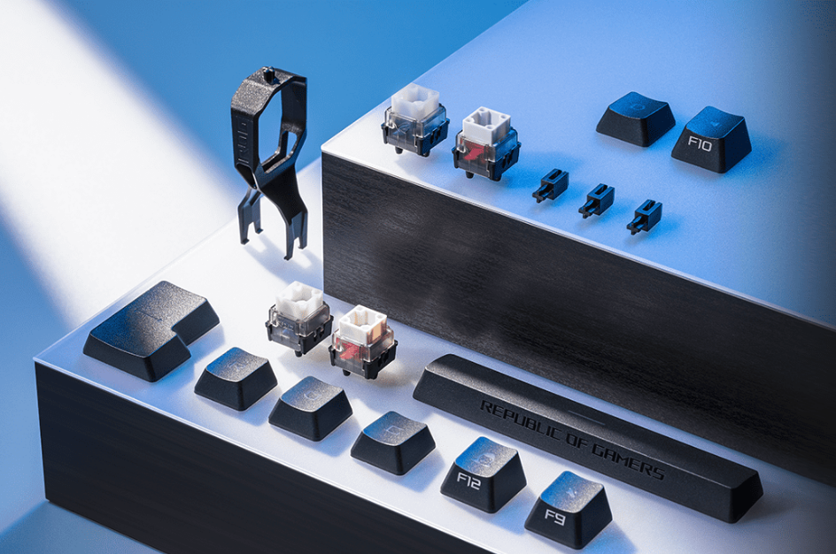 - 輕鬆安裝:隨附 ROG 拔鍵器,更便於將原有鍵帽移除。