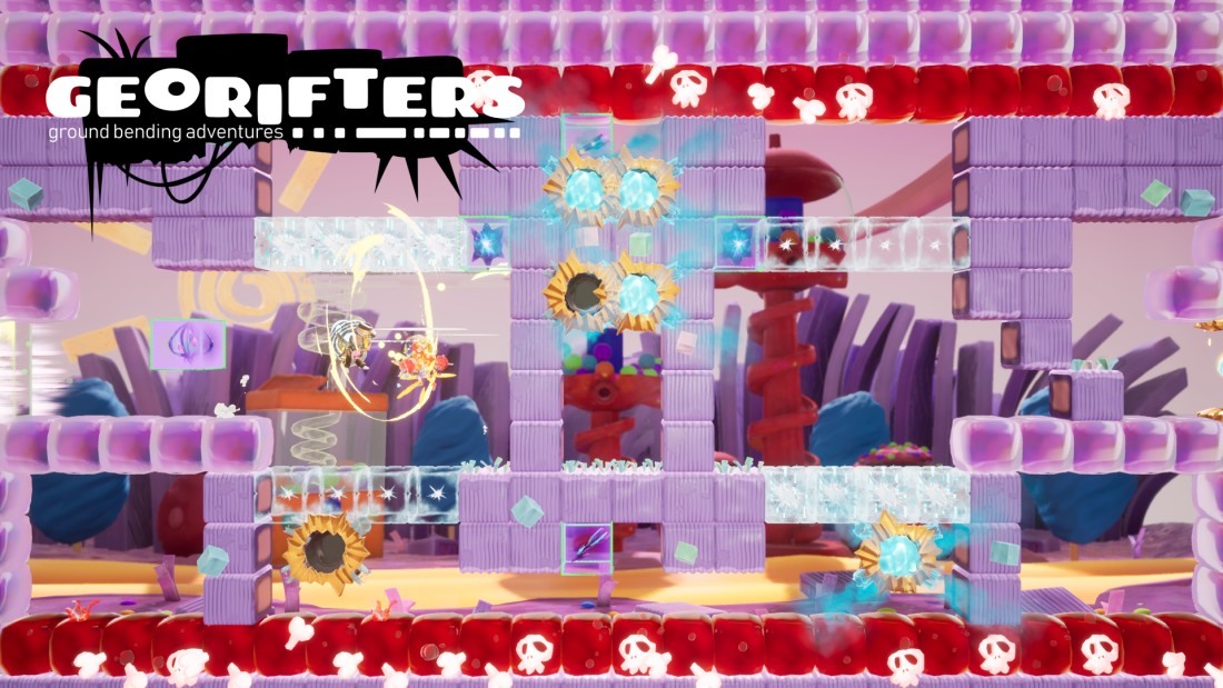 《Georifters》是由台灣益遊數位旗下遊戲製作團隊 Busy Toaster 推出的跨平台橫向動作冒險遊戲,玩家將藉由推進和翻轉地形來挑戰上百個關卡,享受單人及多人模式不同的樂趣。遊戲隨著各個怪趣的角色展開,他們原本各自生活在極其迥異的氣泡世界,各自擁有獨特的稀有能力,包含推移、置換、翻轉身處的地形方塊。某天,他們的命運因為一個怪異的傳送結界而被綑綁在一起,被迫走入對方的世界裡。