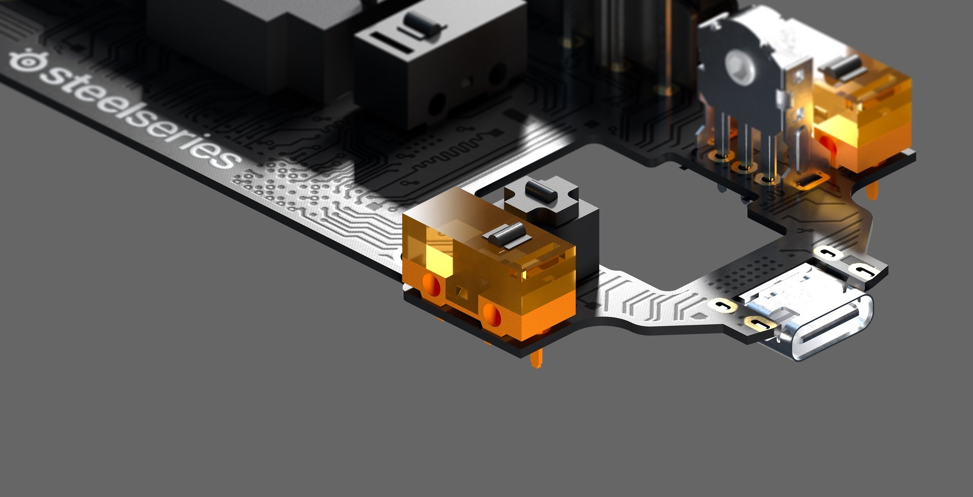 - PTFE 滑動滾輪使滑鼠順滑移動