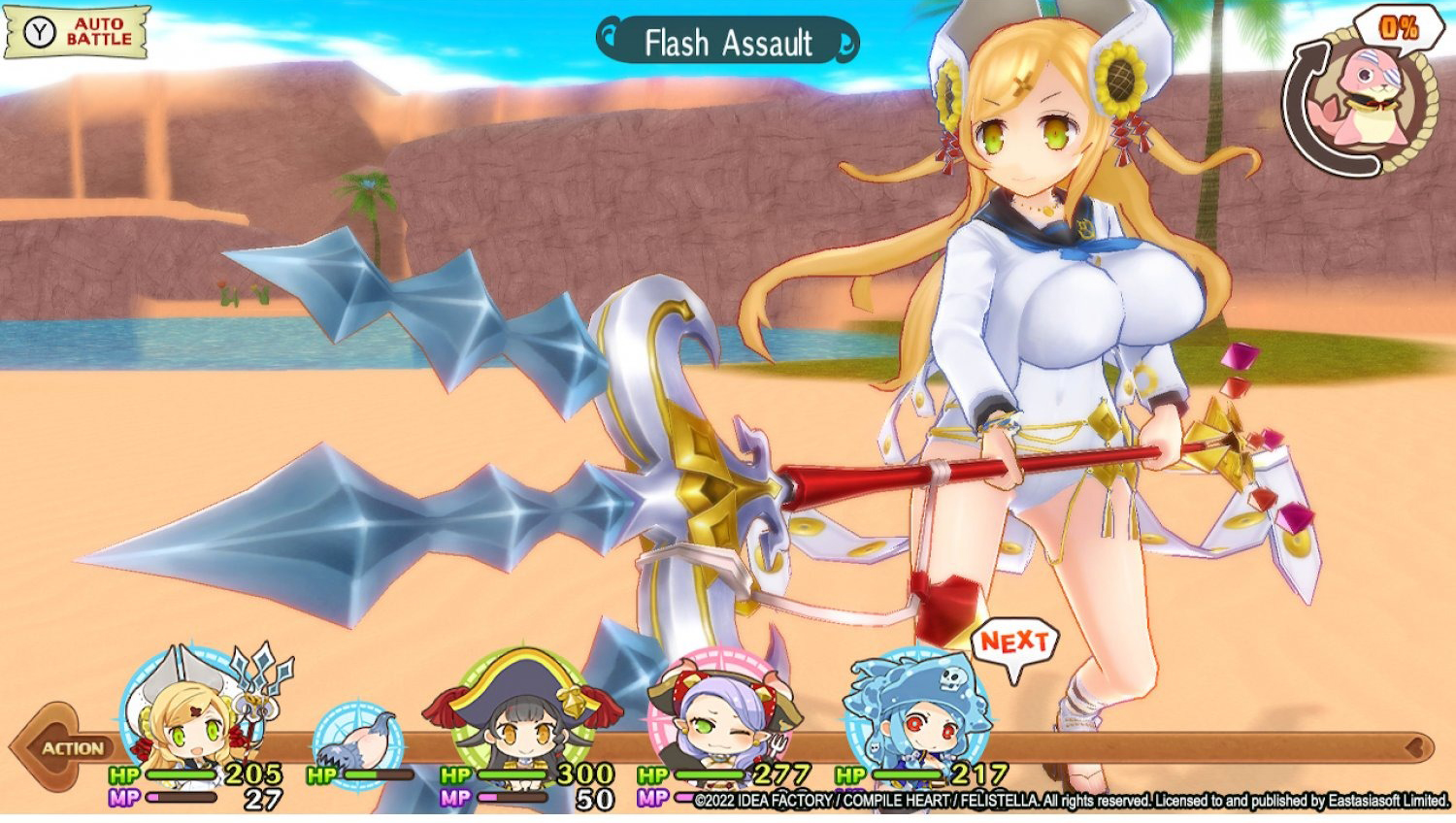 《極限凸旗 七海盜 H》是一款注重探索與發現的傳統 RPG,其中加入了大量的粉絲福利。身為帕爾媞,您將在回合制戰鬥中指揮怪物女孩小隊,利用敵人的弱點對抗他們並佔據上風。以 3D 的方式在島嶼間冒險、乘上歐頓前往祕密區域、收集物品升級強化自身能力!還可以透過特殊的「胸部訓練」系統控制所有女性船員的胸部大小,藉此調整屬性數值加成,放大胸部能增強力量和防禦力,縮小胸部則能提升速度和敏捷度!