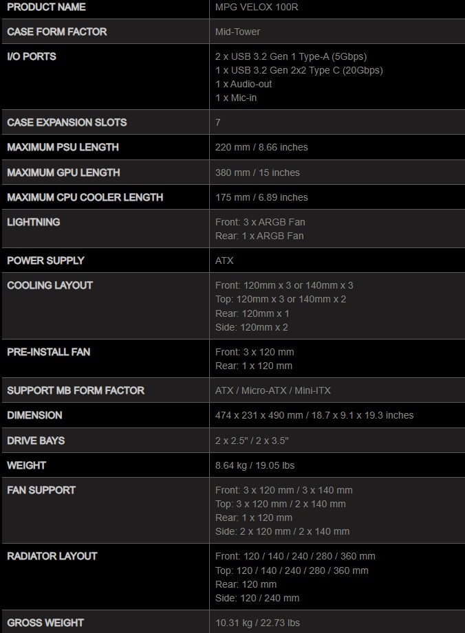 MSI MPG Velox 100R ATX 玻璃側透機箱