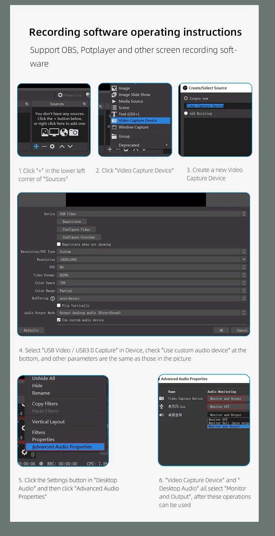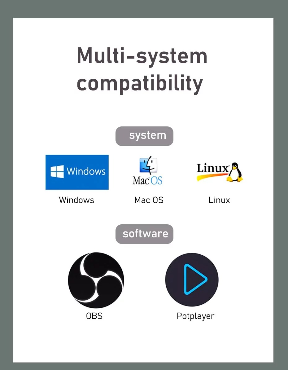 - Support most Video Capture Software, like VLC, OBS, Amcap and so on
