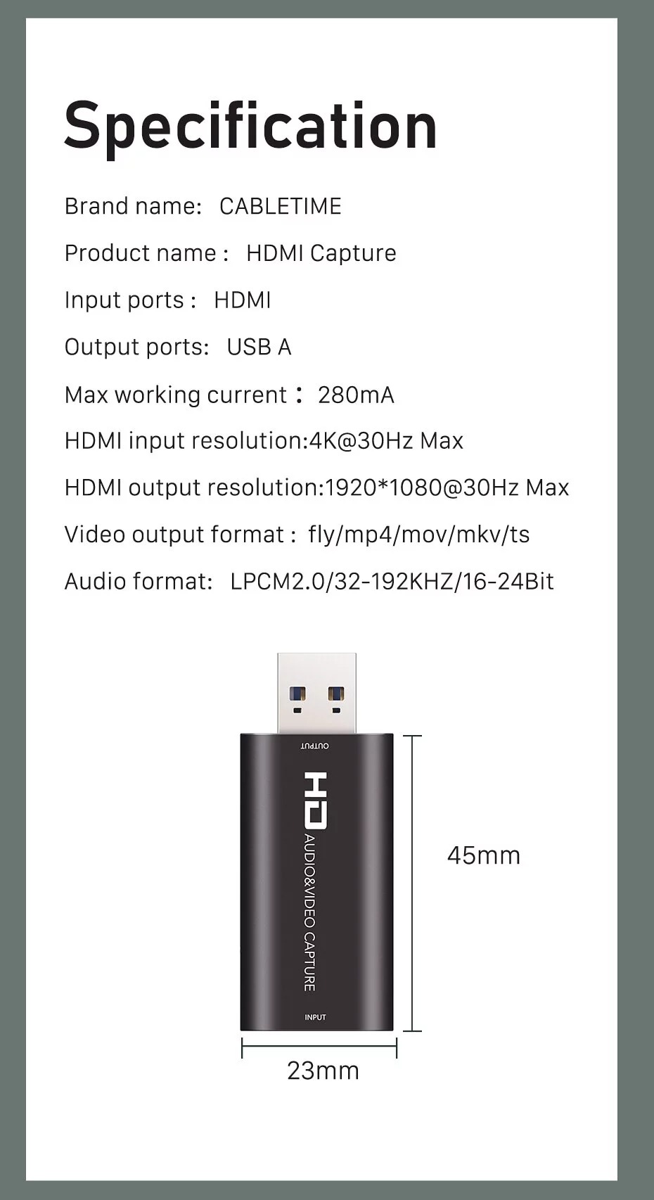 - Output Resolution: 1920×1080@60Hz Max