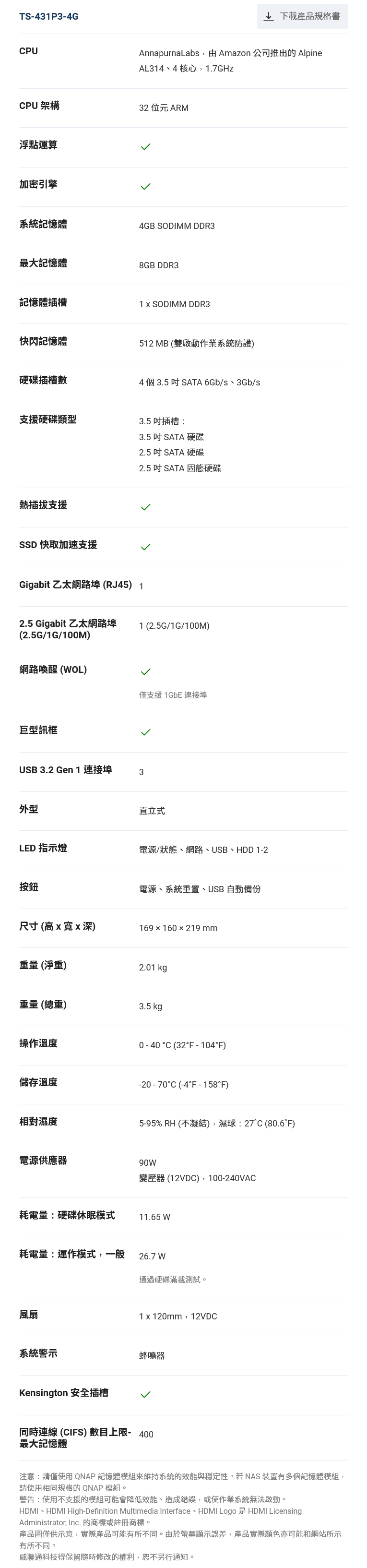 QNAP TS-431P3 NAS 網路儲存裝置(4G)