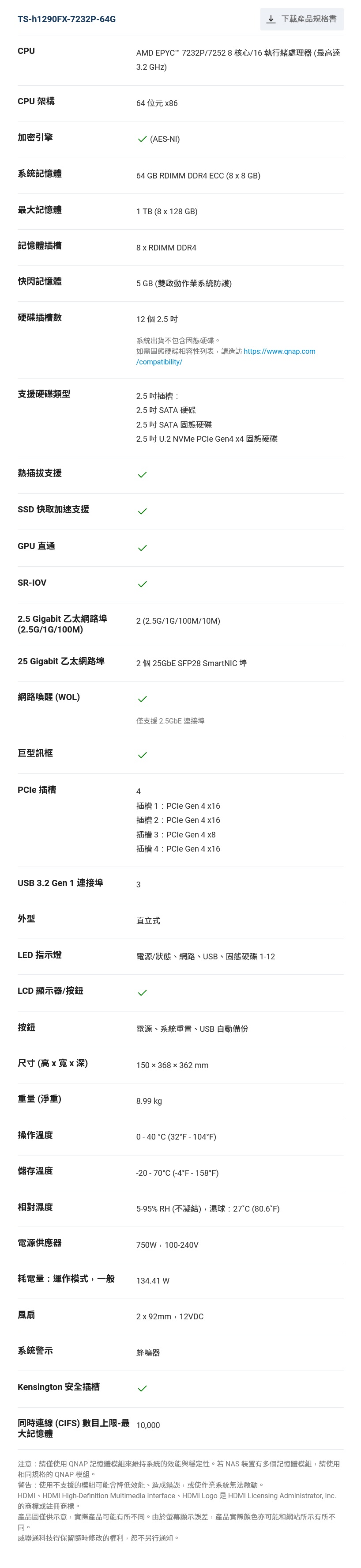 QNAP TS-h1290FX NAS 網路儲存裝置(64G)