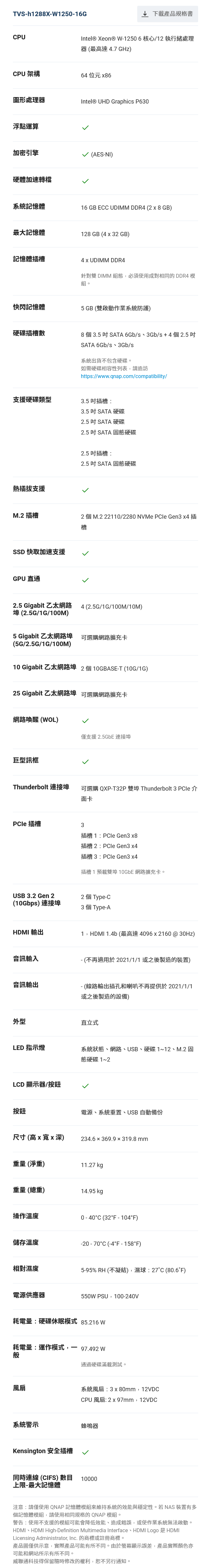大容量 TVS-h1288X 搭載強悍 Intel® Xeon® W 處理器,可同時安裝 2 張 QNAP QXP-T32P Thunderbolt™ 3 PCIe 擴充卡 (選購),享有高達 4 埠 Thunderbolt™ 3 高速傳輸所帶來的極速影音編輯工作流,打造 Mac® 與 Windows® 高效多媒體協作環境。TVS-h1288X 亦內建多埠 10GbE 與 2.5GbE 傳輸,支援 Port Trunking 與故障轉移,為企業應用帶來大頻寬傳輸的優勢。奠基於 ZFS 的 QuTS hero 作業系統重視資料完整性,支援區塊層級即時重複資料刪除和壓縮、近乎無限的快照 (Snapshot)、即時快照同步 (Real-time SnapSync)、和讀寫兼備的多層快取等進階功能。不僅影音編輯協作,作為檔案伺服器、虛擬伺服器、以及高效檔案備份及異地備援等應用,TVS-h1288X 皆能完美勝任,滿足企業重視高效率和穩定服務的要求。