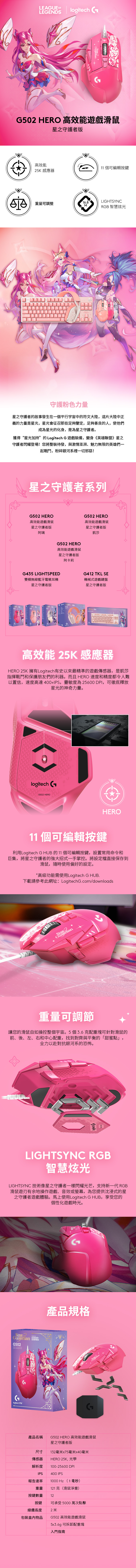 Logitech G502 HERO 遊戲滑鼠 (英雄聯盟星光戰士聯動系列)(凱莎 桃紅色款)
