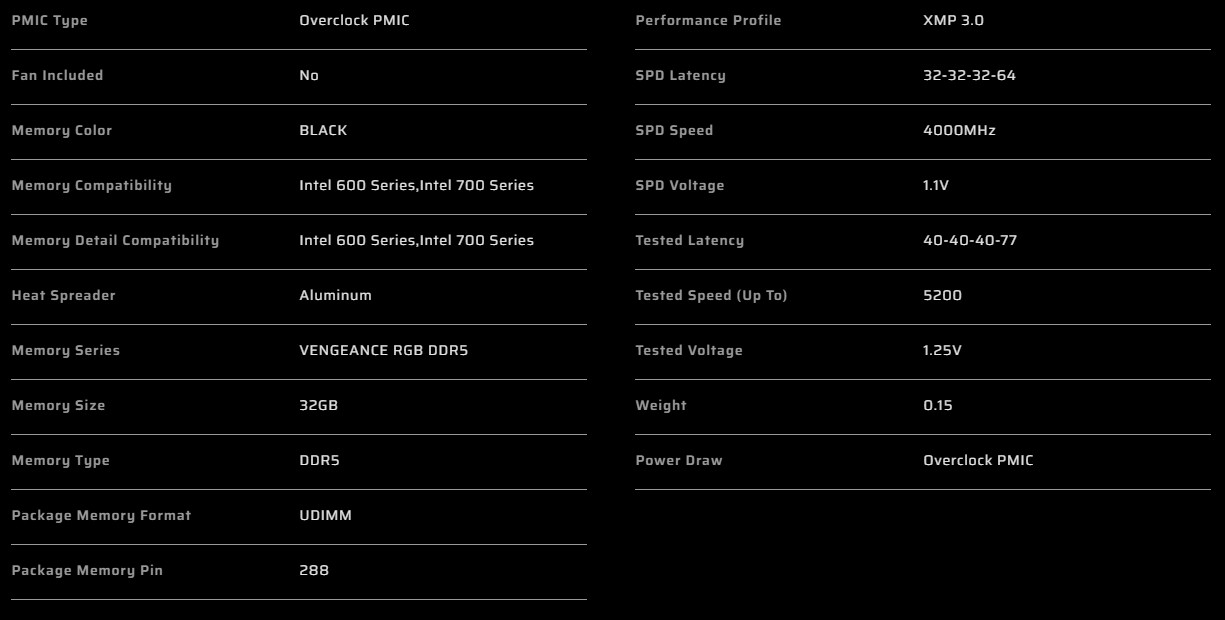 Corsair VENGEANCE RGB PRO DDR5-5200MHz 64GB (32GB x2) CL40 BLACK(CMH64GX5M2B5200C40)
