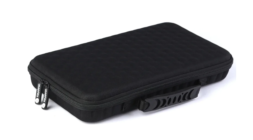 Marrying the concept of a keyboard case and a carrying case, the keyboard carrying case delivers durability without extra weight. It is both aesthetically pleasing and utilitarian.