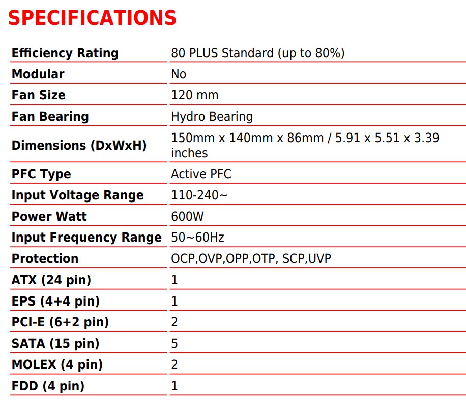 MSI MAG A600DN 600W 80+ White Series 電源供應器