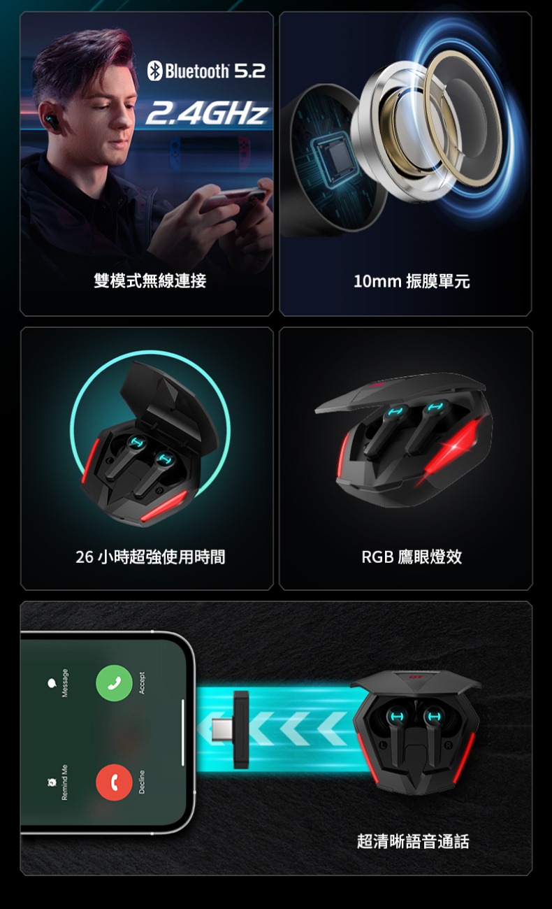- 15ms 超低延遲,搭配特殊 H+ 音效,帶來無縫遊戲體驗