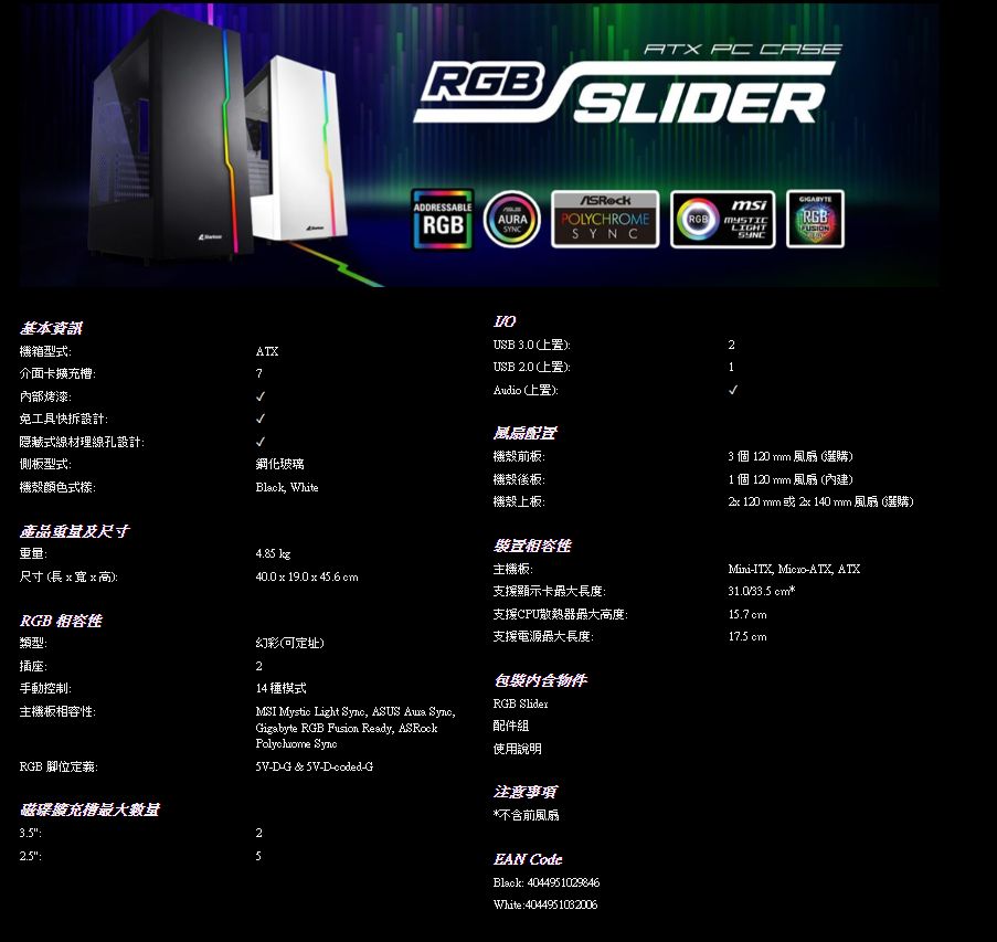Sharkoon RGB Slider 流影者 中塔型機箱(黑色)