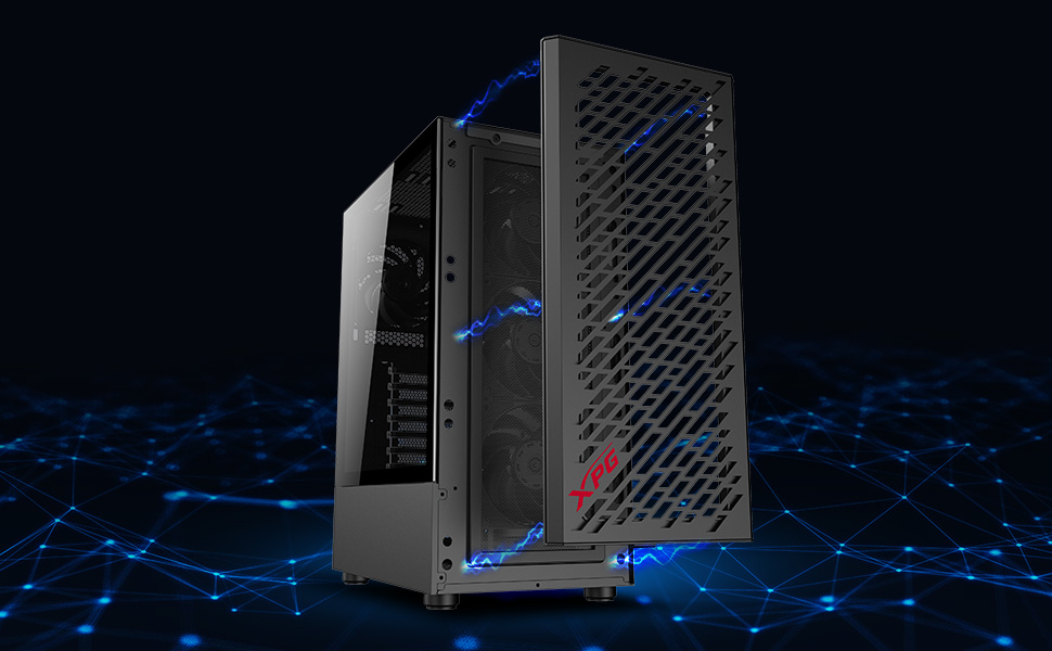 XPG VALOR AIR is a compact ATX mid-tower chassis with Streamline-Carving front panel design. Magnetic front panel and filter are both detachable, convenient for quick cleaning. 3mm-tempered glass side panel serves as a way to enjoy gazing through the tempered glass for looks.