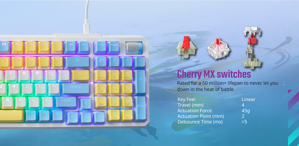 - 鍵盤開關類型:Cherry MX 開關(紅軸)
