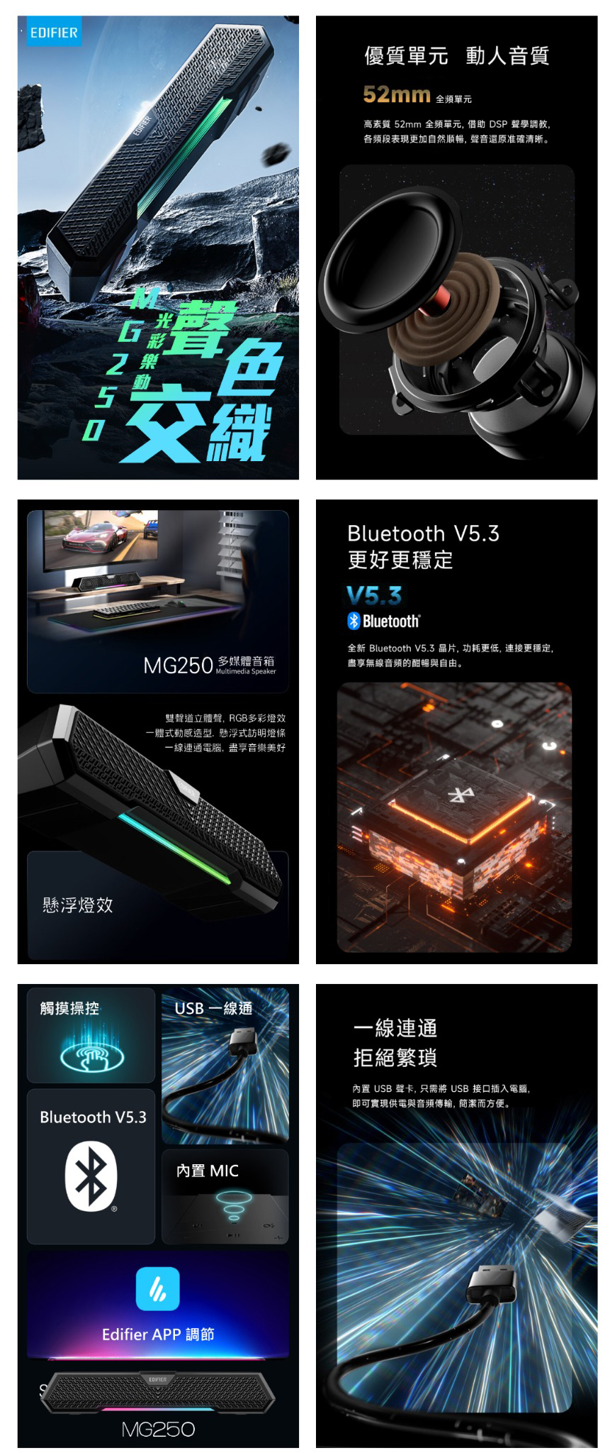 - 出色的音質 (2.5W+2.5W) 通過高品質 52mm 驅動和逆變器享受高品質音樂