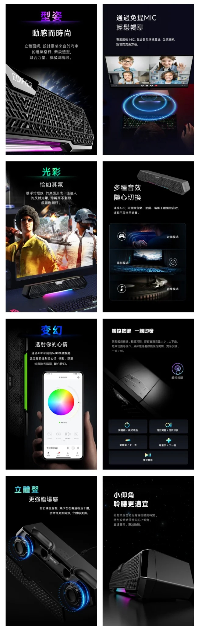 - 酷炫設計 通過精巧的設計外殼享受炫酷的 RGB 燈光效果,與周圍環境完美融合現代桌面/桌面設置