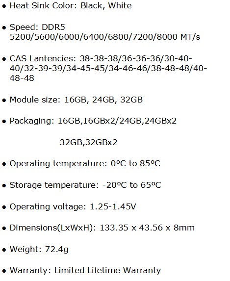 ADATA XPG Lancer RGB DDR5-6400Mhz 32GB*2 CL32 Black 記憶體(AX5U6400C3232G-DCLARBK)