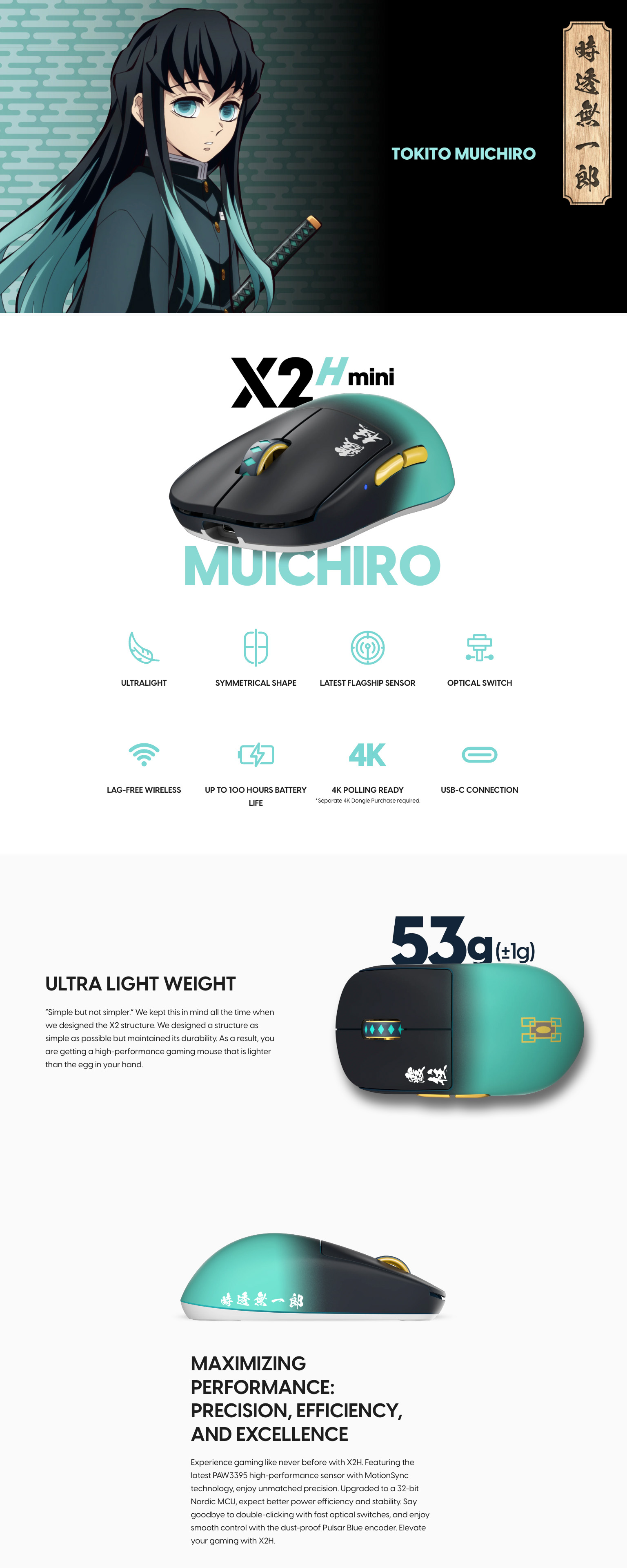 - Up to 100 hours of battery life at 1000Hz polling rate ±10% (Actual battery life may vary based on user's environment)