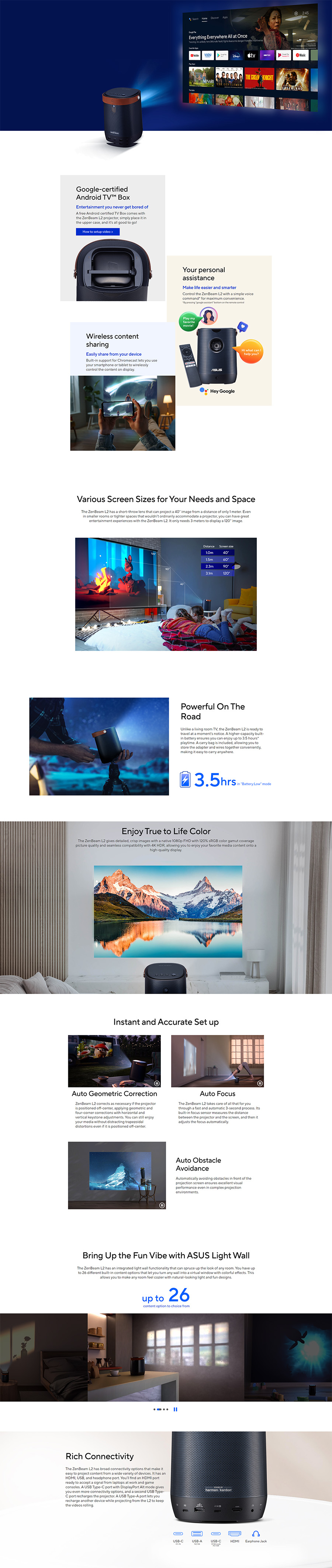 - Projection Distance: 0.8 ~ 3.2 meters