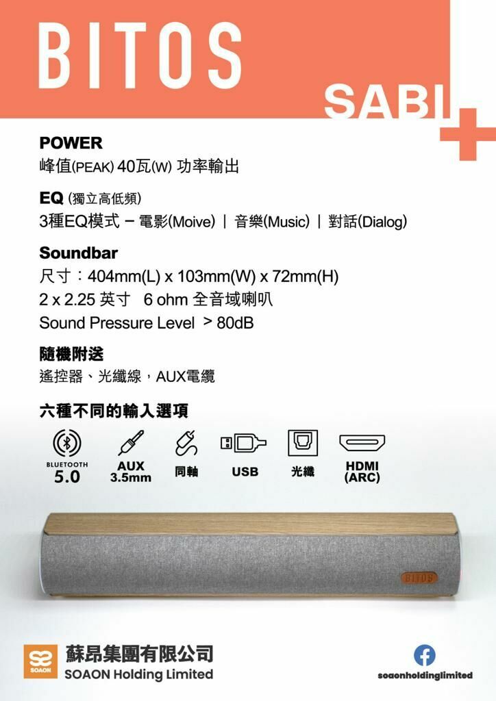 Bitos SABI+ 2.0 16吋Sound Bar喇叭