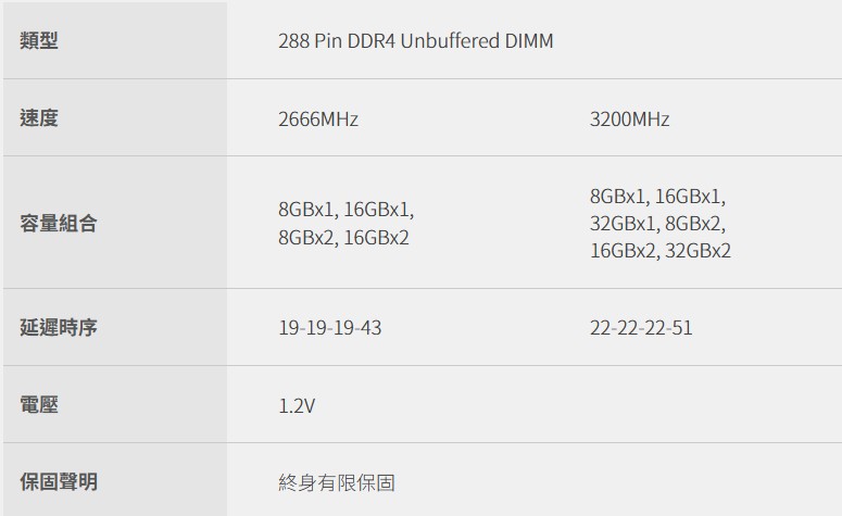 • 記憶體模組(RAM)、閃存卡(SD)、USB 隨身碟:**有限度終身保固**