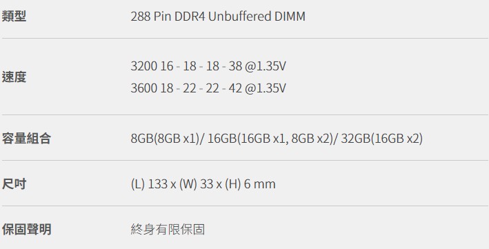 • 記憶體模組(RAM)、閃存卡(SD)、USB 隨身碟:**有限度終身保固**