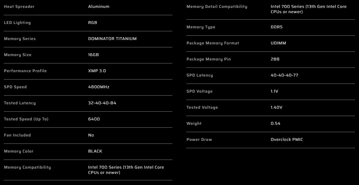 Corsair DOMINATOR TITANIUM RGB DDR5-6400MHz 64GB (16GB x4) CL32 BLACK(CMP64GX5M4B6400C32)