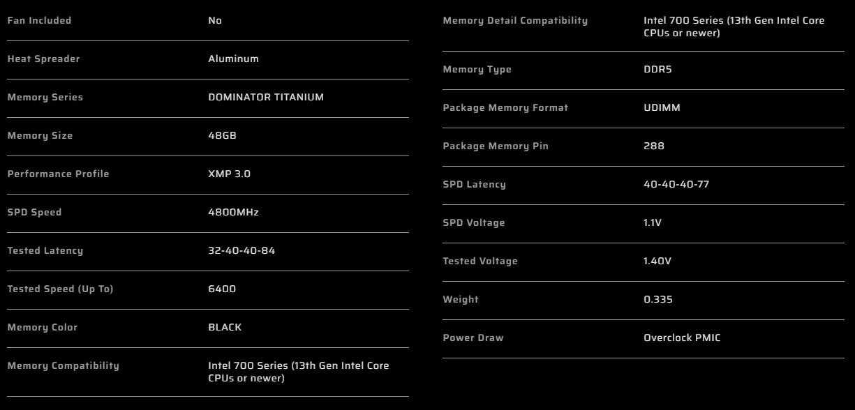 Corsair DOMINATOR TITANIUM RGB DDR5-6400MHz 96GB (48GB x2) CL32 BLACK(CMP96GX5M2B6400C32)