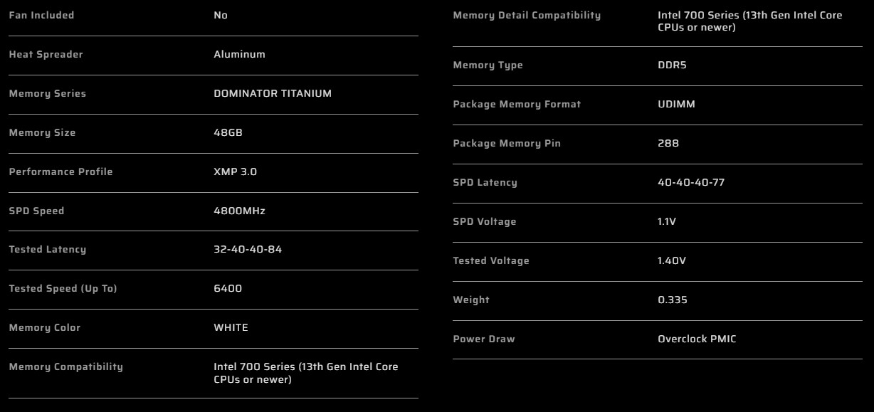 Corsair DOMINATOR TITANIUM RGB DDR5-6400MHz 96GB (48GB x2) CL32 WHITE(CMP96GX5M2B6400C32W)