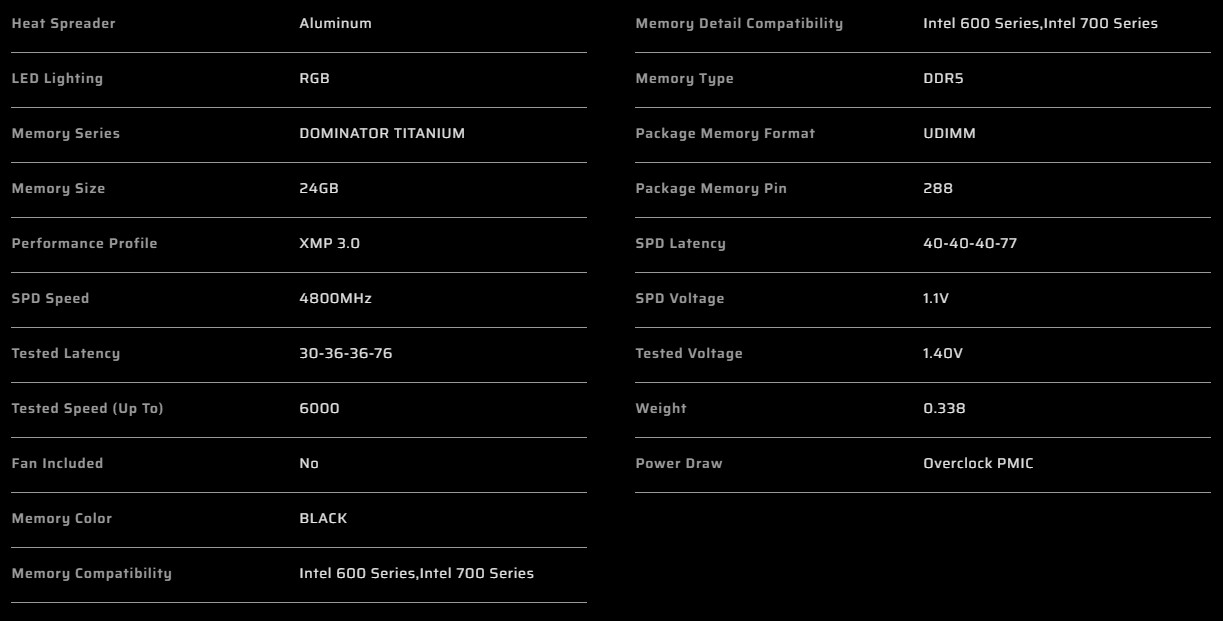 Corsair DOMINATOR TITANIUM RGB DDR5-6000MHz 48GB (24GB x2) CL30 BLACK(CMP48GX5M2B6000C30)