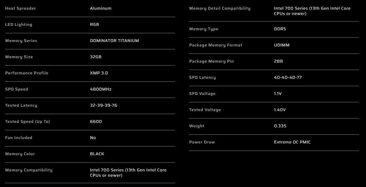 Corsair DOMINATOR TITANIUM RGB DDR5-6600MHz 64GB (32GB x2) CL32 BLACK(CMP64GX5M2X6600C32)