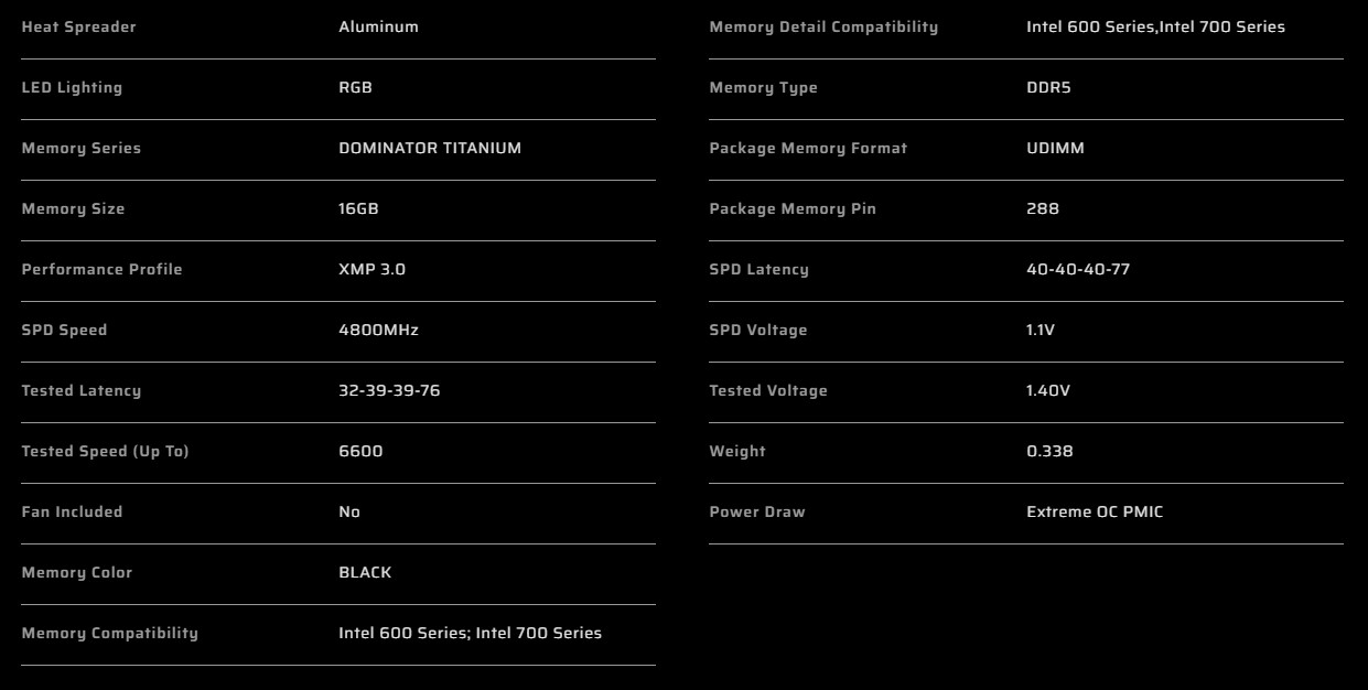 Corsair DOMINATOR TITANIUM RGB DDR5-6600MHz 32GB (16GB x2) CL32 BLACK(CMP32GX5M2X6600C32)