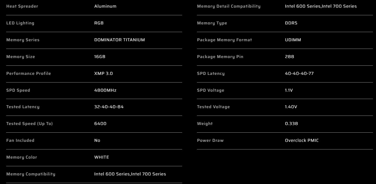 Corsair DOMINATOR TITANIUM RGB DDR5-6400MHz 32GB (16GB x2) CL32 WHITE(CMP32GX5M2B6400C32W)