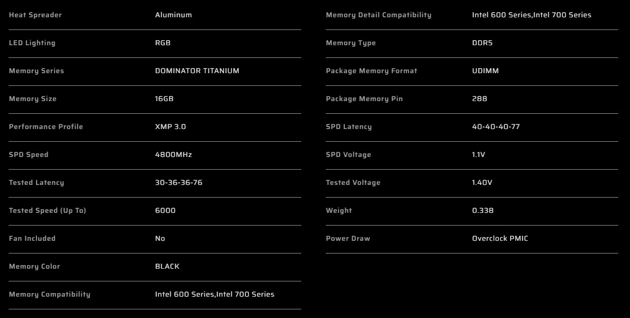 Corsair DOMINATOR TITANIUM RGB DDR5-6000MHz 32GB (16GB x2) CL30 BLACK(CMP32GX5M2B6000C30)