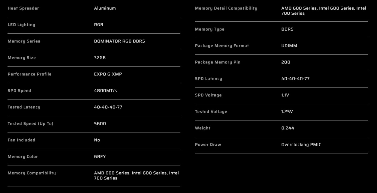 Corsair DOMINATOR PLATINUM RGB DDR5-5600MHz 64GB (32GB x2) CL40 BLACK(CMT64GX5M2B5600Z40K)