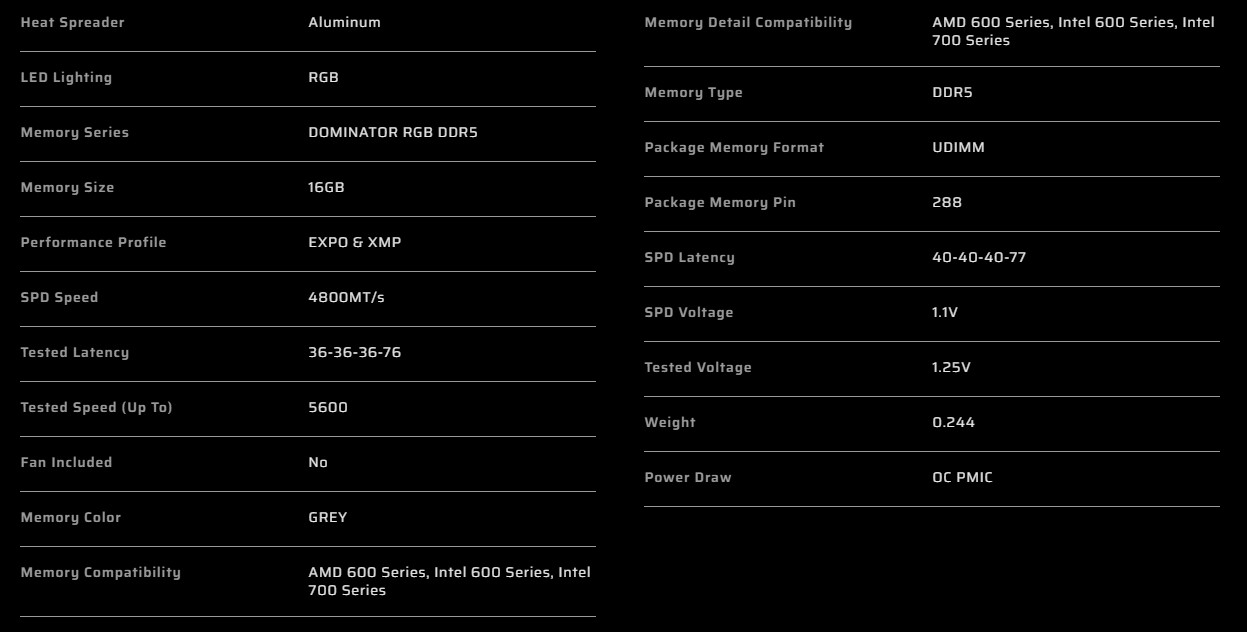 Corsair DOMINATOR PLATINUM RGB DDR5-5600MHz 32GB (16GB x2) CL36 BLACK(CMT32GX5M2B5600Z36)